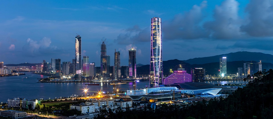 由上海寶冶承建的深圳珠海十字門中央商務區項目位于珠海市香洲區,與澳門隔河相望,背山面水,山海城共生,生態資源優越,是國內為數不多的集展覽、會議、劇院、酒店、商務、旅游為一體的大型公共高端綜合體建筑群。塔樓建筑面積約14.6萬平方米,建筑高度330米,是當時珠澳第一高樓。